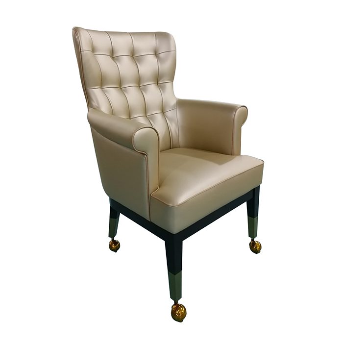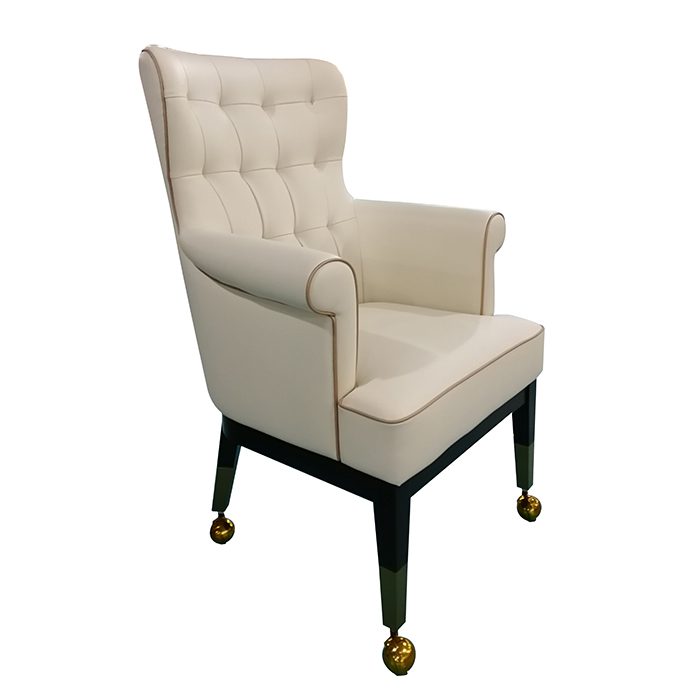Each chair is upholstered with elegant, soft fabric colors and has tasteful touches of shiny, lucky gold or bronze in trimmings, the chair base or wheels. The baccarat and blackjack chairs also incorporate a quilted design pattern into the chair back to provide a luxurious French aesthetic which hearkens back to Hoi An’s unique heritage as a trading port.
